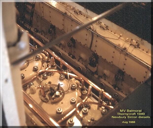 MV Balmoral, built by John Thorneycroft of Southampton in 1949 for the Southampton Red Funnel Line, was fitted with two ‘O’ type, two stroke reversing, Sirron diesels made under licence by Thorneycroft. These gave fifty plus years of sterling service but were finally replaced, in preservation, with two new four stroke diesels. Her last sailing with the Sirron diesels was in March 2003,