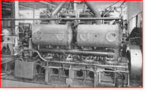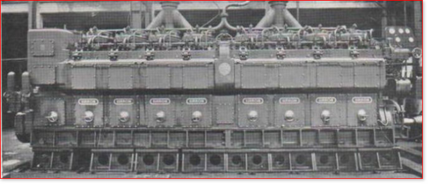 A 6 cylinder SBD engine standing in the works test area. About 1936 one of two 6SBD's built for MV Sincerity and MV Suavity