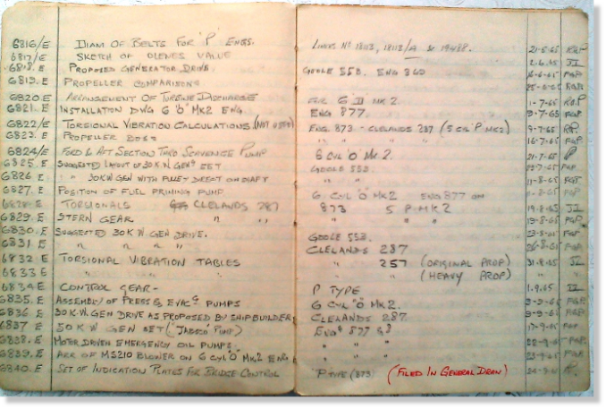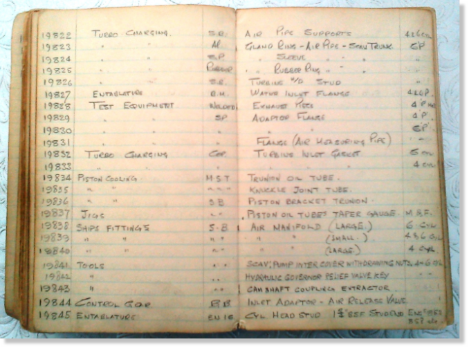 Some pre computer handwritten books have come to light which show the way that drawings and parts were recorded. A couple of pages give an idea how it was done before computers came along.