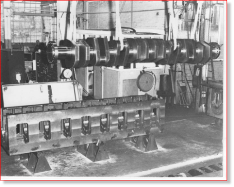 The two stroke direct reversing engine more or less reached its conclusion in the late 50's. What changed this was the introduction of turbo charging which was well suited to smaller four stroke engines along with hydraulic reduction and reversing gearboxes. 1966 saw the start of a change for the Newbury Diesel Company with the trials of a new four stroke designed by Mr Illingworth. The engine was designated the "T"type and was built in a four cylinder version to test the feasability of the design and to determine if the existing manufacturing facilities in the Kings Road factory would be suitable for production of such an engine. The company carried on to a final conclusion with the build of an eight cylinder 1600bhp engine but the answer to the ability of the manufacturing facilities question was no and Everard's, in agreement with the management of the Newbury Diesel Company, decided that the market competition was too great and the project was finally scrapped. The T Type engine never sailed despite the build team's best efforts.