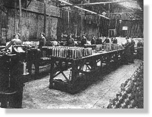 The first World War saw manufacturing facilities all over the UK being turned over to war production. The Diesel Company was no exception and local girls made 18 pounder shell cases in a section of the factory. The photograph above and to the right show the designated area of the works in use for armament production.