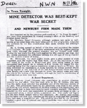 The Diesel company played its part during the second World War and a section of the factory was turned over to the very secret manufacture of parts for the asdic system being used against the U boat threat by Royal Navy escorts. During the time the factory was host to production, the area was strictly out of bounds to personnel who were not authorised.